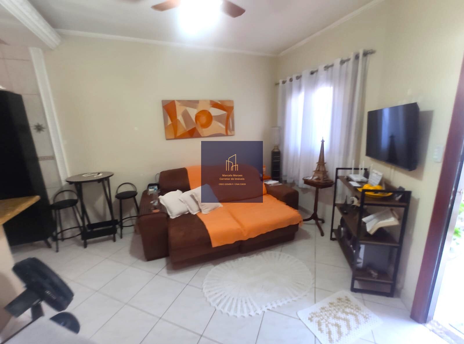 DESCRIÇÃO INTERNA: 1 dormitório com ar condicionado,1 banheiros social, sala ampla, cozinha estilo Americana, área de serviço, churrasqueira.